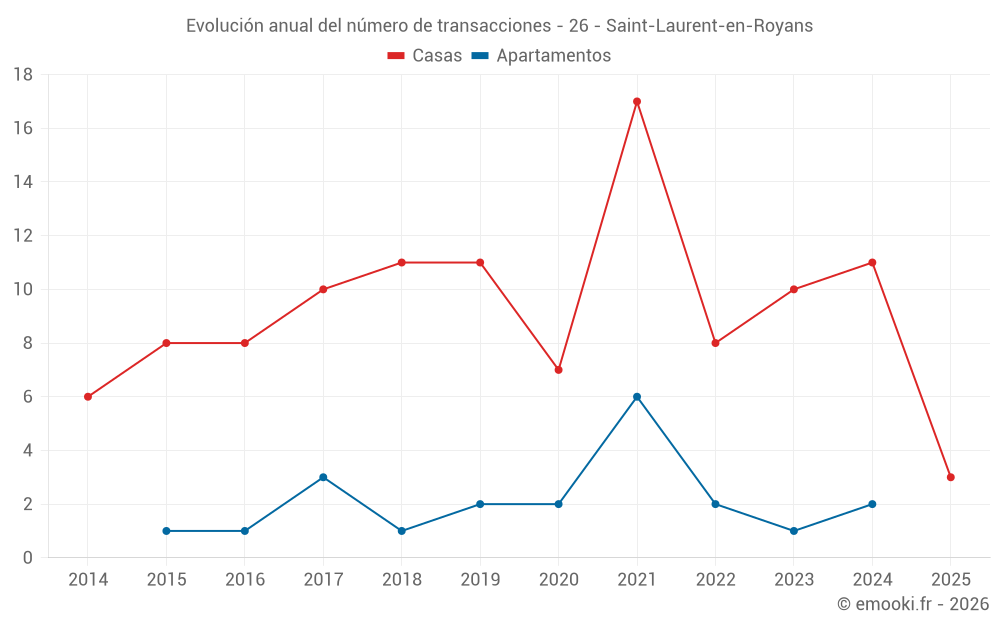 El precio mediano en las 19 transacciones de casas de los últimos 24 meses en la comuna de Saint-Laurent-en-Royans fue de 2 357 € por metro cuadrado para un valor patrimonial medio de 224 780 €. Durante este período el 60% de las transacciones estuvieron entre 1 712 y 2 943 € por metro cuadrado (del 2º al 8º decil).