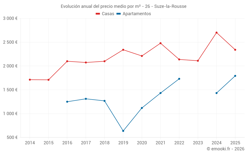 ¿Cuál es el precio por m2 de las casas en Suze-la-Rousse?