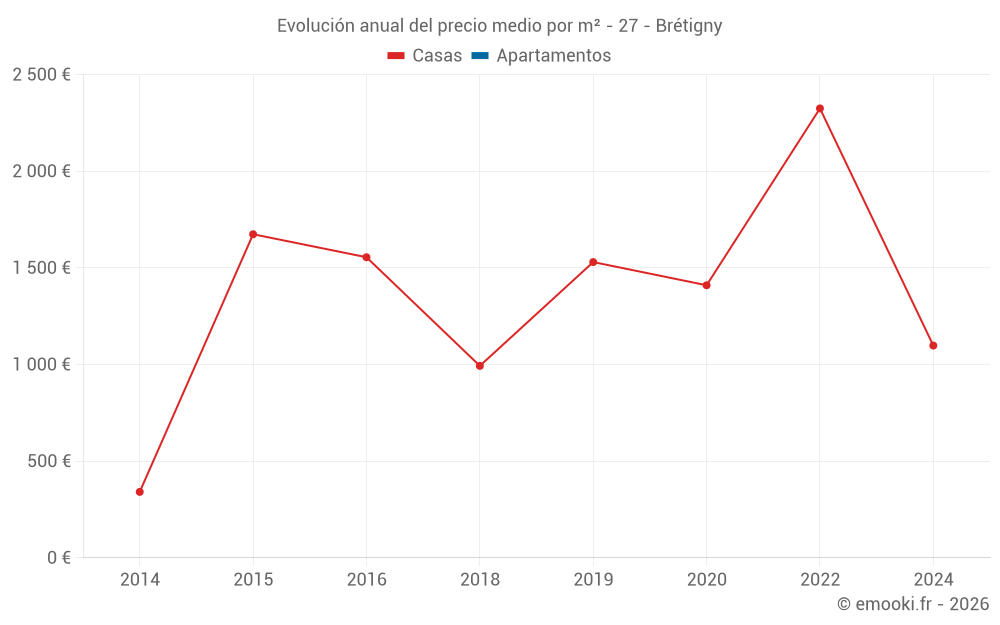 Evolución del precio medio por m² de los apartamentos