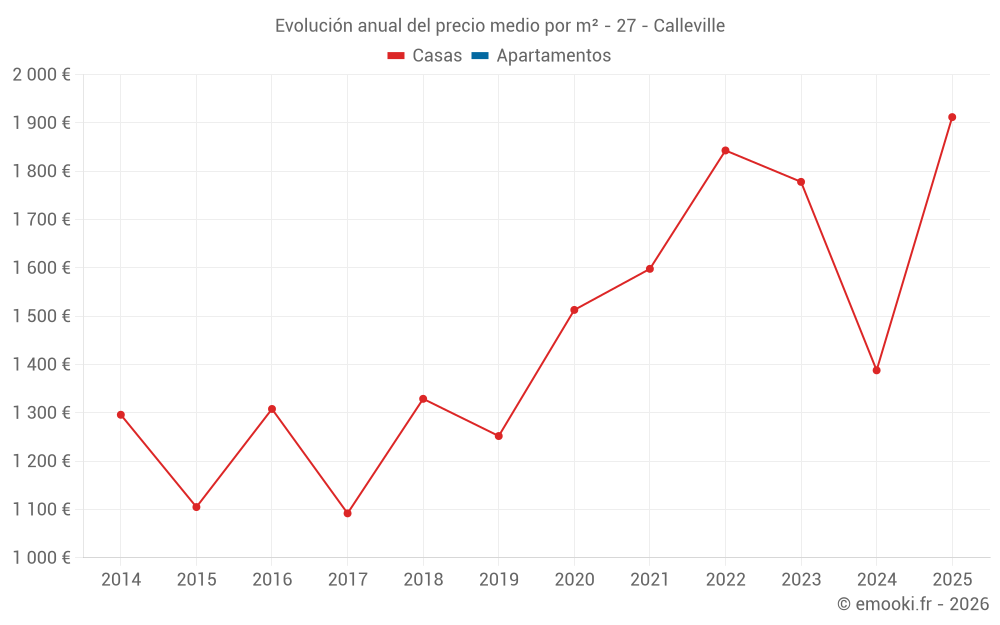 Evolución del precio medio por m² de las casas