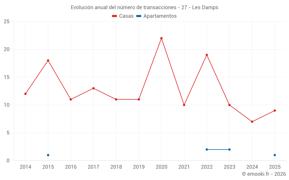 El precio mediano en las 20 transacciones de casas de los últimos 24 meses en la comuna de Les Damps fue de 2 128 € por metro cuadrado para un valor patrimonial medio de 181 950 €. Durante este período el 60% de las transacciones estuvieron entre 1 496 y 2 536 € por metro cuadrado (del 2º al 8º decil).