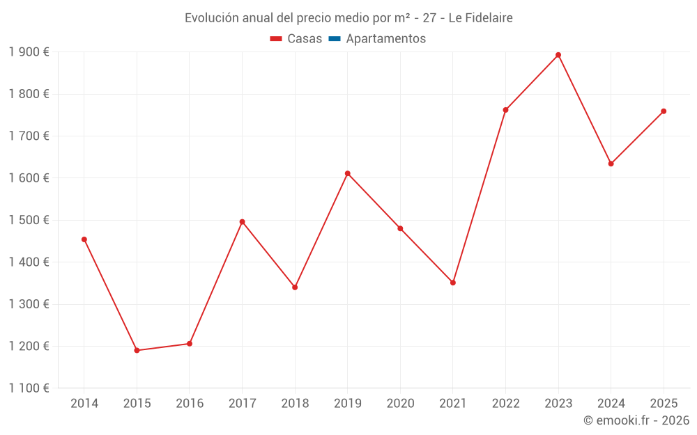 El precio mediano en las 19 transacciones de casas de los últimos 12 meses en la comuna de Le Fidelaire fue de 1 760 € por metro cuadrado para un valor patrimonial medio de 166 000 €. Durante este período el 60% de las transacciones estuvieron entre 1 280 y 2 295 € por metro cuadrado (del 2º al 8º decil).