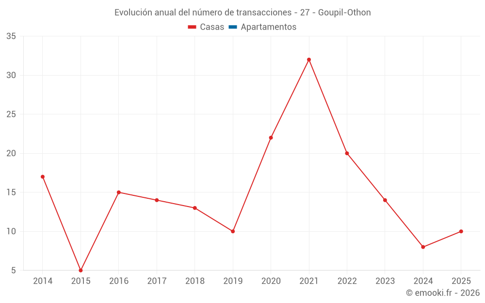 El precio mediano en las 16 transacciones de casas de los últimos 12 meses en la comuna de Goupil-Othon fue de 1 843 € por metro cuadrado para un valor patrimonial medio de 177 500 €. Durante este período el 60% de las transacciones estuvieron entre 1 667 y 2 262 € por metro cuadrado (del 2º al 8º decil).