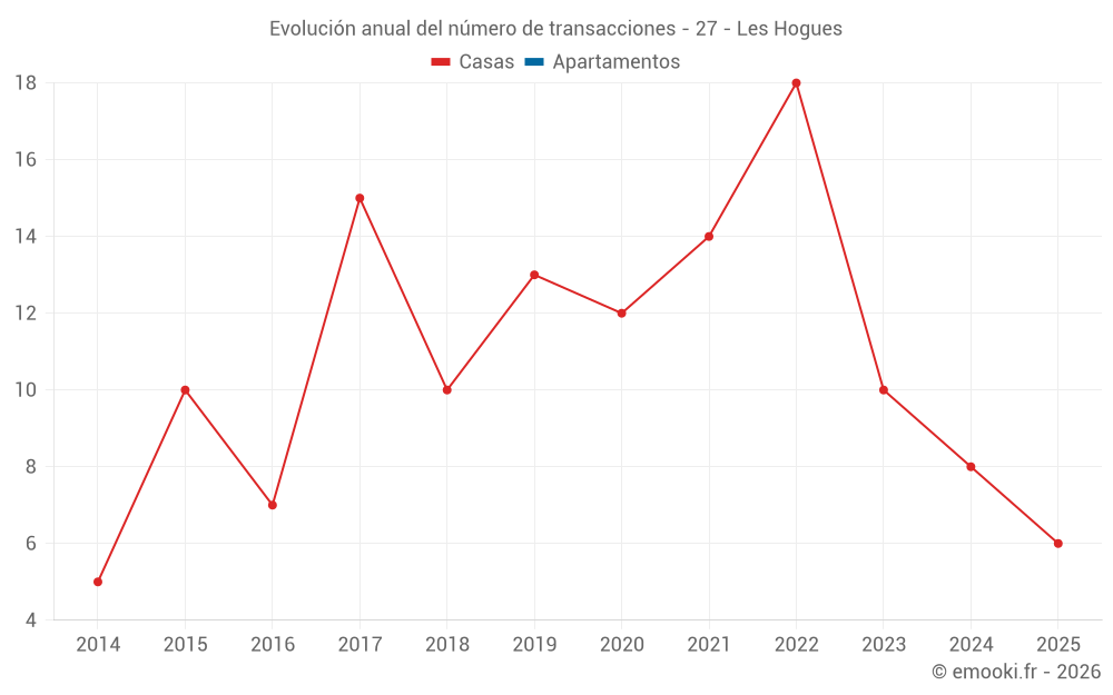 El precio mediano en las 16 transacciones de casas de los últimos 24 meses en la comuna de Les Hogues fue de 1 956 € por metro cuadrado para un valor patrimonial medio de 167 250 €. Durante este período el 60% de las transacciones estuvieron entre 1 553 y 2 169 € por metro cuadrado (del 2º al 8º decil).