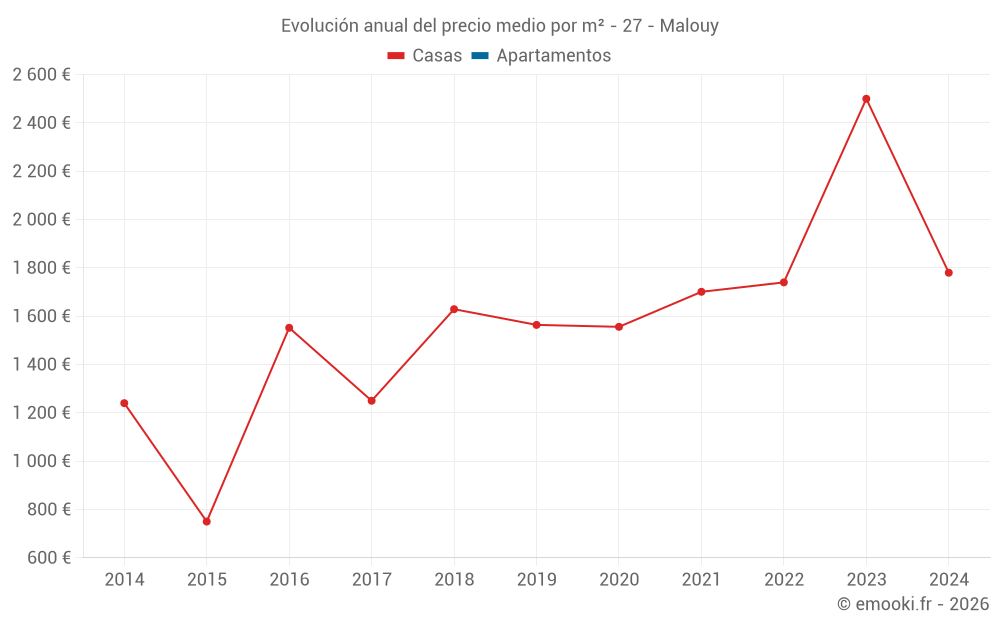 Mapa de precios de la vivienda en la comuna de Malouy, elija una sección para ver las transacciones por parcela.