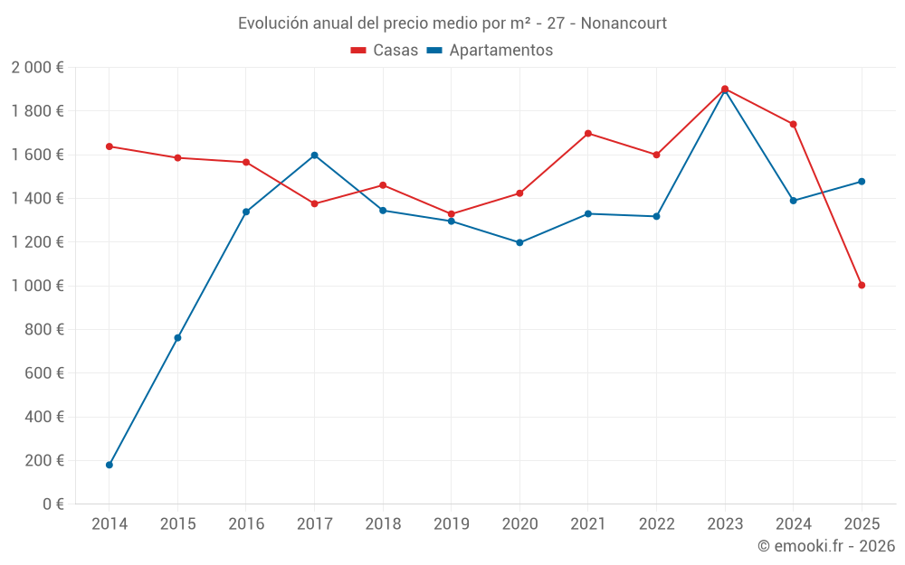 ¿Cuál es el precio por m2 de las casas en Nonancourt?