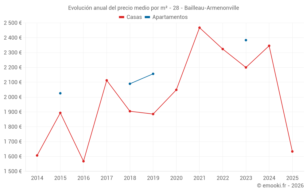 ¿Cuál es el precio por m2 de las casas en Bailleau-Armenonville?