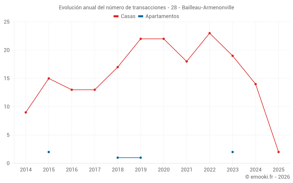 El precio mediano en las 26 transacciones de casas de los últimos 24 meses en la comuna de Bailleau-Armenonville fue de 2 194 € por metro cuadrado para un valor patrimonial medio de 206 150 €. Durante este período el 60% de las transacciones estuvieron entre 1 808 y 2 655 € por metro cuadrado (del 2º al 8º decil).