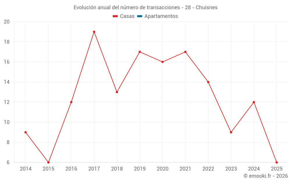 El precio mediano en las 24 transacciones de casas de los últimos 24 meses en la comuna de Chuisnes fue de 1 735 € por metro cuadrado para un valor patrimonial medio de 170 000 €. Durante este período el 60% de las transacciones estuvieron entre 1 464 y 1 993 € por metro cuadrado (del 2º al 8º decil).