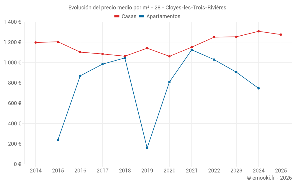 ¿Cuál es el precio por m2 de las casas en Cloyes-les-Trois-Rivières?