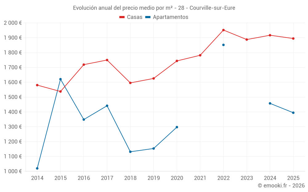 ¿Cuál es el precio por m2 de las casas en Courville-sur-Eure?