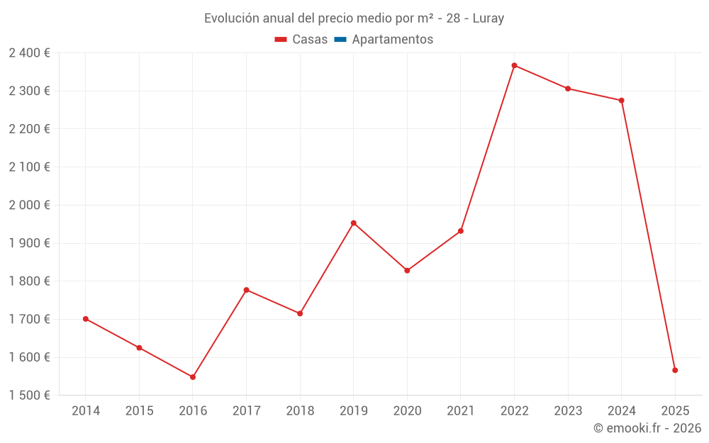El precio mediano en las 31 transacciones de casas de los últimos 24 meses en la comuna de Luray fue de 2 239 € por metro cuadrado para un valor patrimonial medio de 199 000 €. Durante este período el 60% de las transacciones estuvieron entre 1 776 y 2 683 € por metro cuadrado (del 2º al 8º decil).