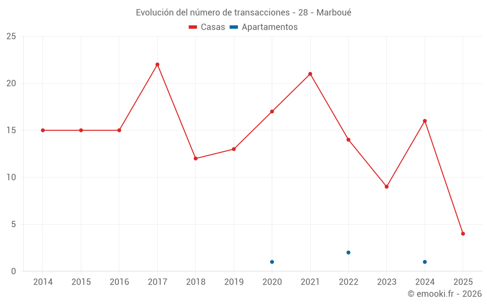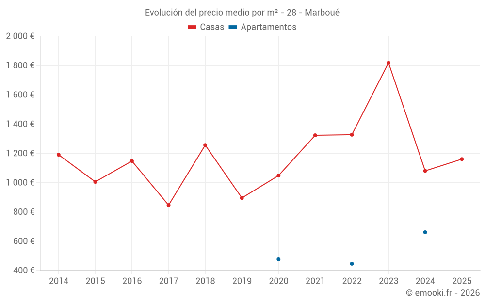 El precio mediano en las 23 transacciones de casas de los últimos 24 meses en la comuna de Marboué fue de 1 088 € por metro cuadrado para un valor patrimonial medio de 97 500 €. Durante este período el 60% de las transacciones estuvieron entre 758 y 1 655 € por metro cuadrado (del 2º al 8º decil).