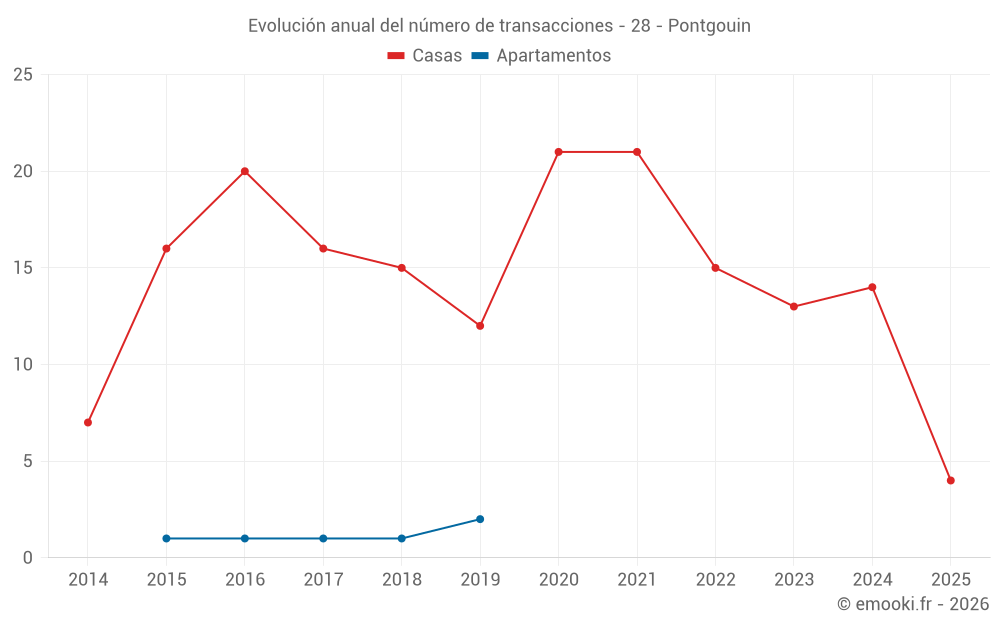 El precio mediano en las 24 transacciones de casas de los últimos 24 meses en la comuna de Pontgouin fue de 1 374 € por metro cuadrado para un valor patrimonial medio de 145 500 €. Durante este período el 60% de las transacciones estuvieron entre 1 032 y 1 915 € por metro cuadrado (del 2º al 8º decil).