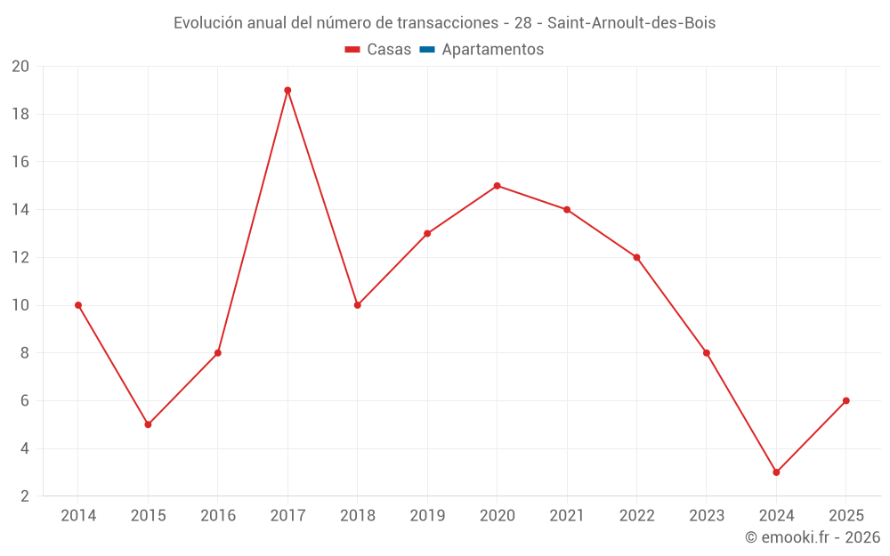 El precio mediano en las 14 transacciones de casas de los últimos 24 meses en la comuna de Saint-Arnoult-des-Bois fue de 1 552 € por metro cuadrado para un valor patrimonial medio de 173 025 €. Durante este período el 60% de las transacciones estuvieron entre 1 351 y 1 810 € por metro cuadrado (del 2º al 8º decil).
