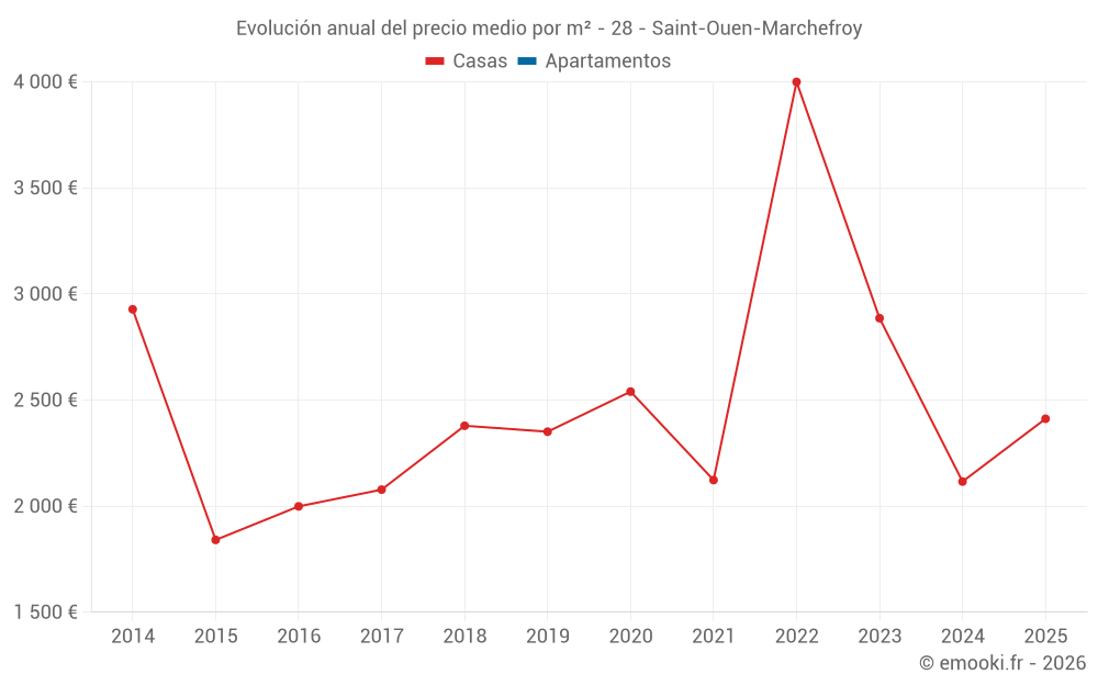 El precio por m² de las casas ha disminuido un 40% desde 3 años, pero ha aumentado un 31% en 10 años.