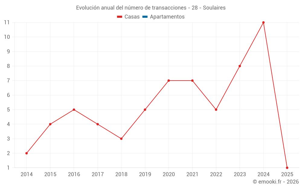 El precio mediano en las 16 transacciones de casas de los últimos 24 meses en la comuna de Soulaires fue de 2 256 € por metro cuadrado para un valor patrimonial medio de 221 000 €. Durante este período el 60% de las transacciones estuvieron entre 1 679 y 2 679 € por metro cuadrado (del 2º al 8º decil).