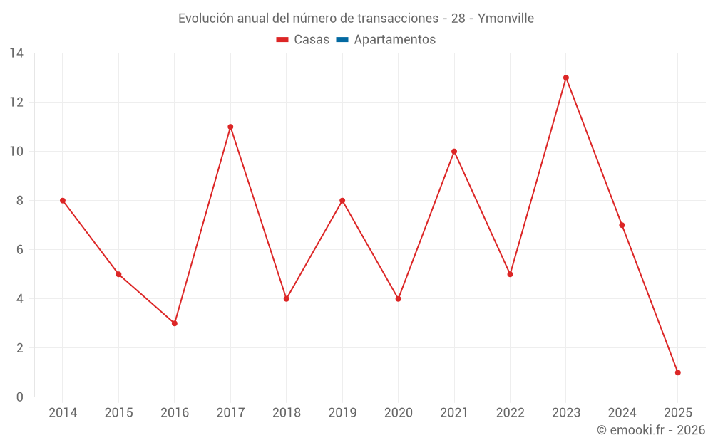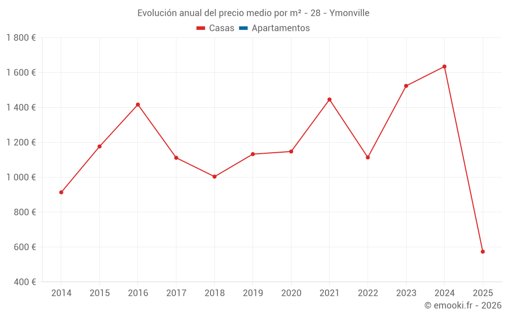 El precio mediano en las 16 transacciones de casas de los últimos 24 meses en la comuna de Ymonville fue de 1 488 € por metro cuadrado para un valor patrimonial medio de 122 500 €. Durante este período el 60% de las transacciones estuvieron entre 1 040 y 1 863 € por metro cuadrado (del 2º al 8º decil).
