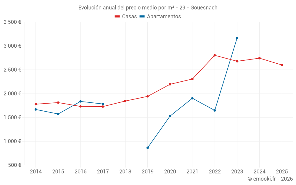 ¿Cuál es el precio por m2 de las casas en Gouesnach?