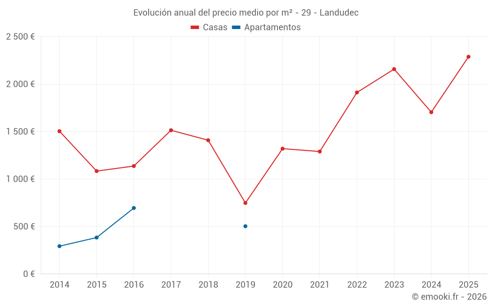 ¿Cuál es el precio por m2 de las casas en Landudec?