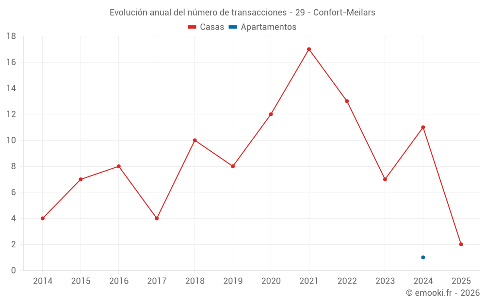 El precio mediano en las 16 transacciones de casas de los últimos 24 meses en la comuna de Confort-Meilars fue de 2 318 € por metro cuadrado para un valor patrimonial medio de 192 335 €. Durante este período el 60% de las transacciones estuvieron entre 1 339 y 2 727 € por metro cuadrado (del 2º al 8º decil).