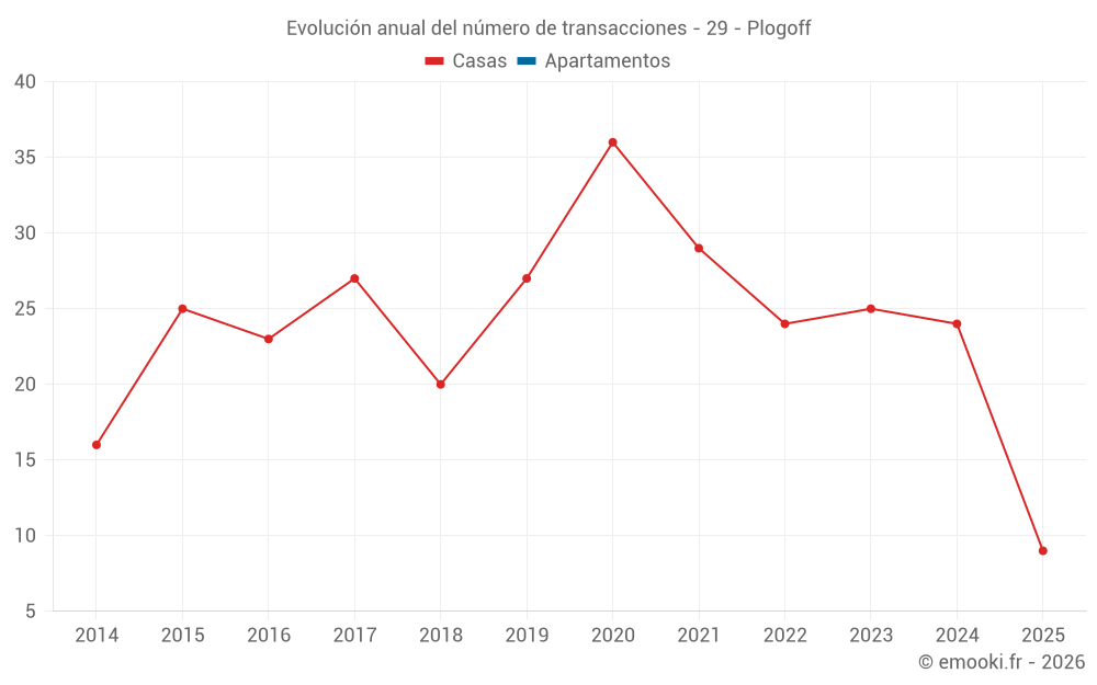 El precio mediano en las 25 transacciones de casas de los últimos 12 meses en la comuna de Plogoff fue de 2 206 € por metro cuadrado para un valor patrimonial medio de 180 000 €. Durante este período el 60% de las transacciones estuvieron entre 937 y 2 908 € por metro cuadrado (del 2º al 8º decil).
