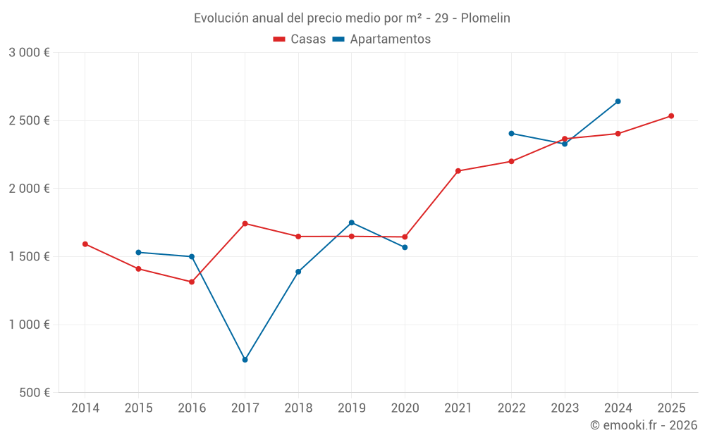 ¿Cuál es el precio por m2 de las casas en Plomelin?