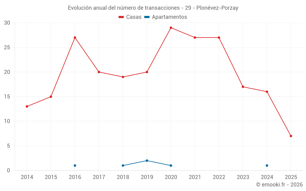 El precio mediano en las 16 transacciones de casas de los últimos 12 meses en la comuna de Plonévez-Porzay fue de 1 572 € por metro cuadrado para un valor patrimonial medio de 200 000 €. Durante este período el 60% de las transacciones estuvieron entre 1 121 y 2 291 € por metro cuadrado (del 2º al 8º decil).