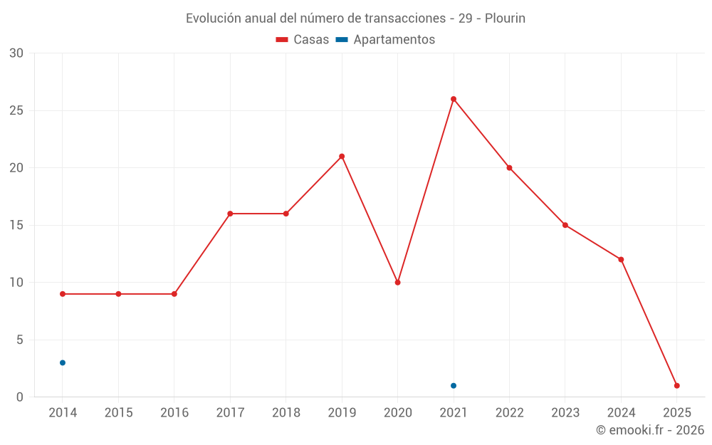 El precio mediano en las 23 transacciones de casas de los últimos 24 meses en la comuna de Plourin fue de 2 033 € por metro cuadrado para un valor patrimonial medio de 200 850 €. Durante este período el 60% de las transacciones estuvieron entre 1 385 y 2 468 € por metro cuadrado (del 2º al 8º decil).