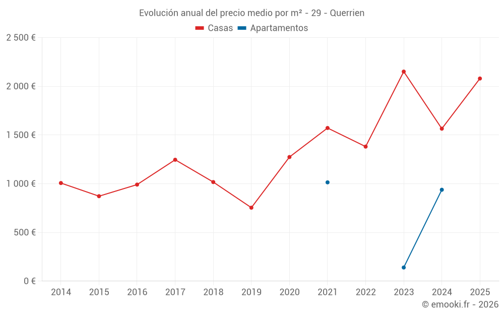 ¿Cuál es el precio por m2 de las casas en Querrien?