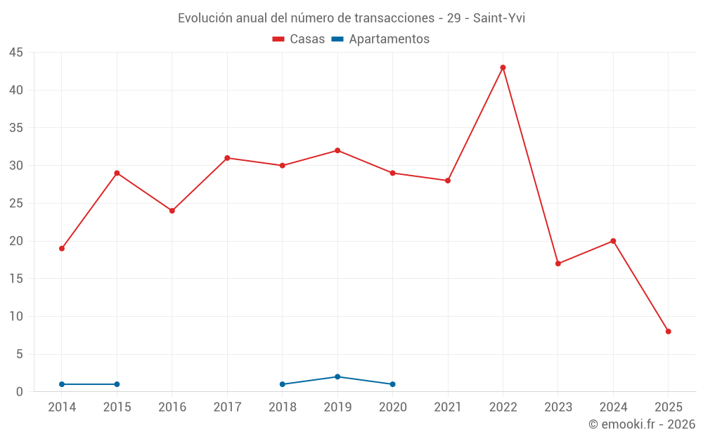 El precio mediano en las 20 transacciones de casas de los últimos 12 meses en la comuna de Saint-Yvi fue de 1 888 € por metro cuadrado para un valor patrimonial medio de 205 750 €. Durante este período el 60% de las transacciones estuvieron entre 1 562 y 2 540 € por metro cuadrado (del 2º al 8º decil).