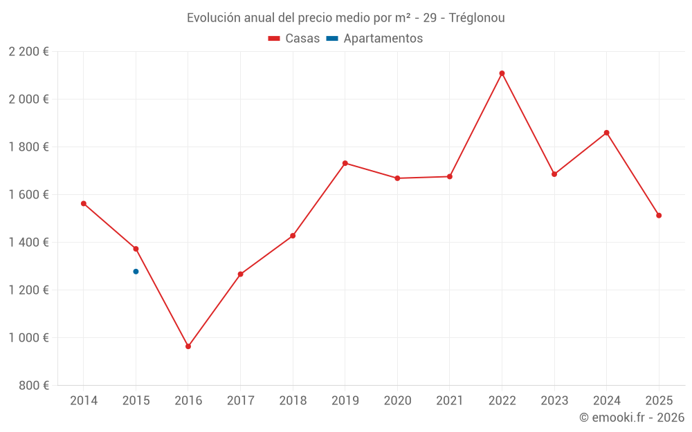 Evolución del precio medio por m² de las casas