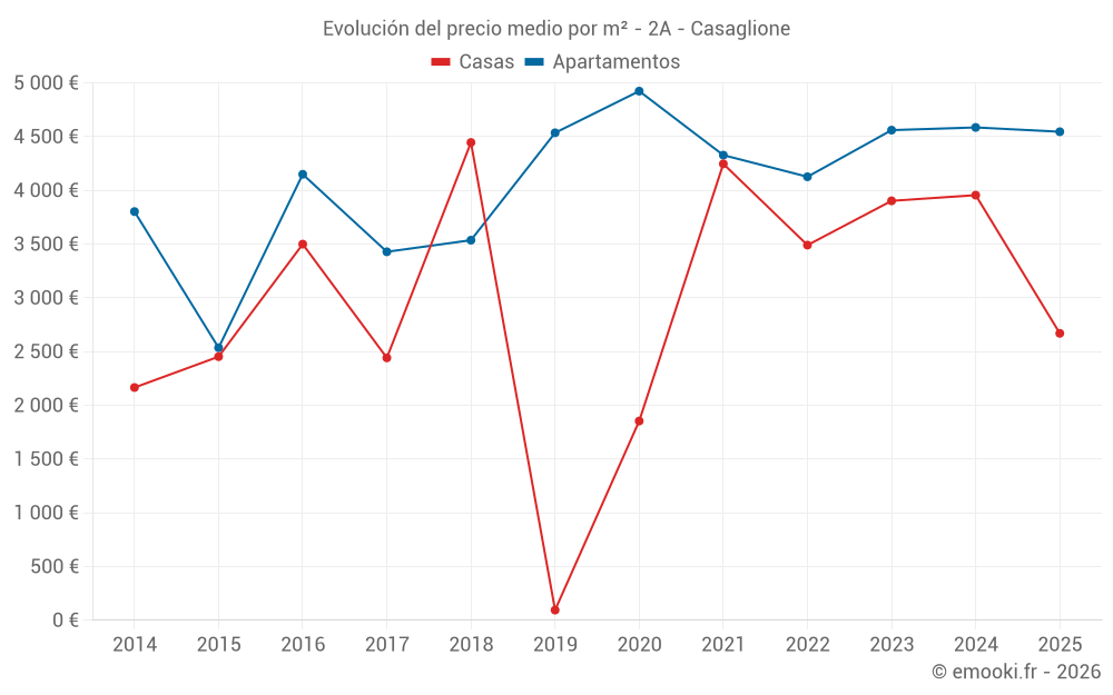 Mapa de precios de la vivienda en la comuna de Casaglione, elija una sección para ver las transacciones por parcela.