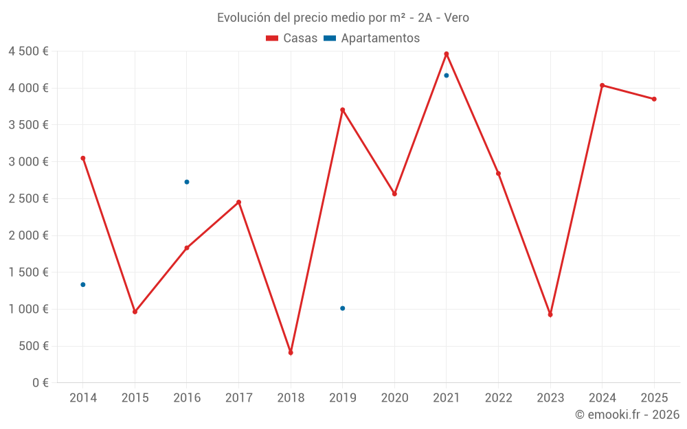 Mapa de precios de la vivienda en la comuna de Vero, elija una sección para ver las transacciones por parcela.