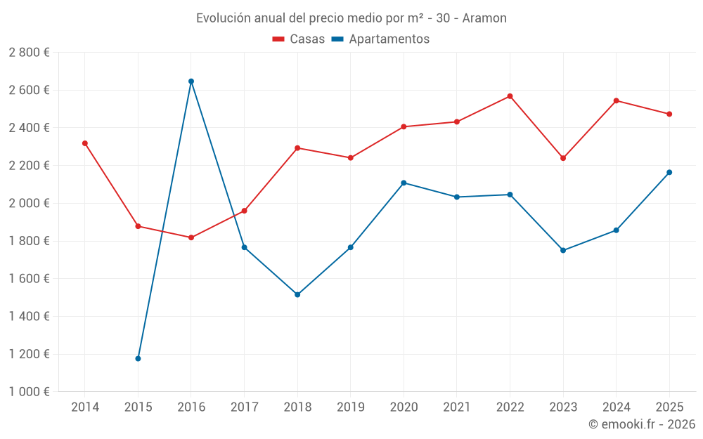 ¿Cuál es el precio por m2 de las casas en Aramon?