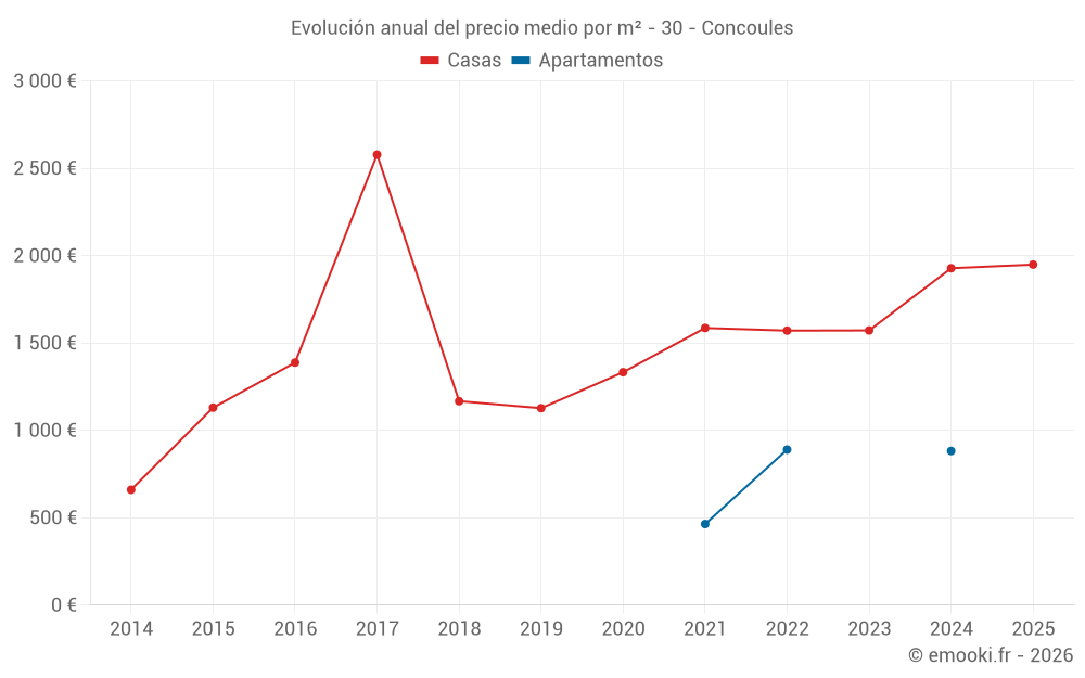 ¿Cuál es el precio por m2 de las casas en Concoules?