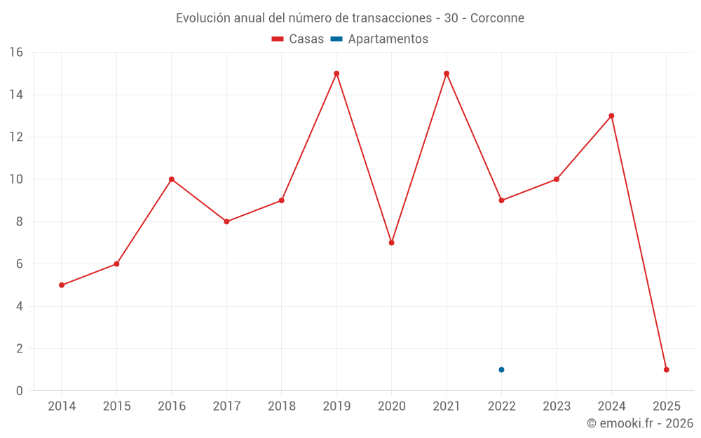 El precio mediano en las 17 transacciones de casas de los últimos 24 meses en la comuna de Corconne fue de 2 374 € por metro cuadrado para un valor patrimonial medio de 217 730 €. Durante este período el 60% de las transacciones estuvieron entre 1 831 y 3 098 € por metro cuadrado (del 2º al 8º decil).