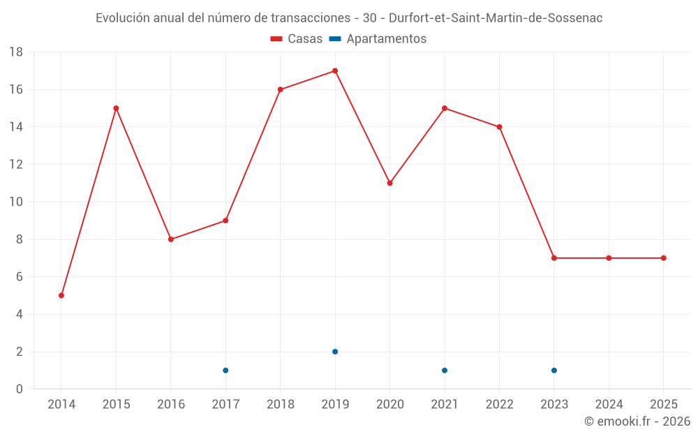 El precio mediano en las 18 transacciones de casas de los últimos 24 meses en la comuna de Durfort-et-Saint-Martin-de-Sossenac fue de 1 884 € por metro cuadrado para un valor patrimonial medio de 217 500 €. Durante este período el 60% de las transacciones estuvieron entre 1 022 y 2 457 € por metro cuadrado (del 2º al 8º decil).