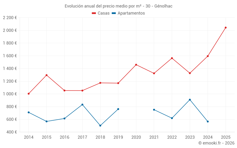 ¿Cuál es el precio por m2 de las casas en Génolhac?