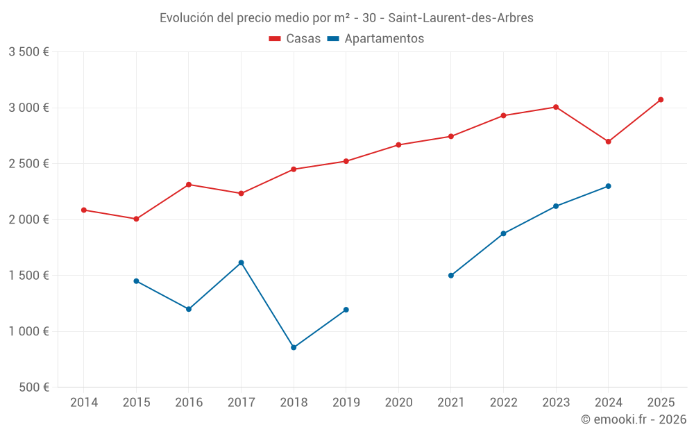 Mapa de precios de la vivienda en la comuna de Saint-Laurent-des-Arbres, elija una sección para ver las transacciones por parcela.