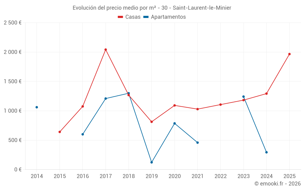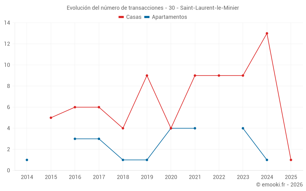 Mapa de precios de la vivienda en la comuna de Saint-Laurent-le-Minier, elija una sección para ver las transacciones por parcela.
