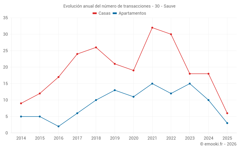 El precio mediano en las 19 transacciones de casas de los últimos 12 meses en la comuna de Sauve fue de 2 121 € por metro cuadrado para un valor patrimonial medio de 200 000 €. Durante este período el 60% de las transacciones estuvieron entre 1 187 y 2 981 € por metro cuadrado (del 2º al 8º decil).