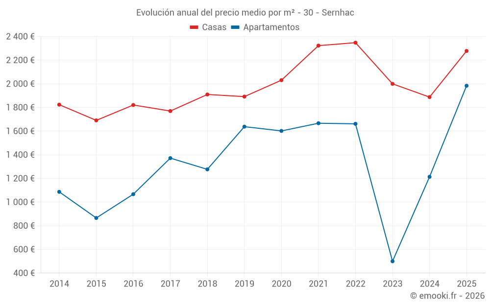 ¿Cuál es el precio por m2 de las casas en Sernhac?