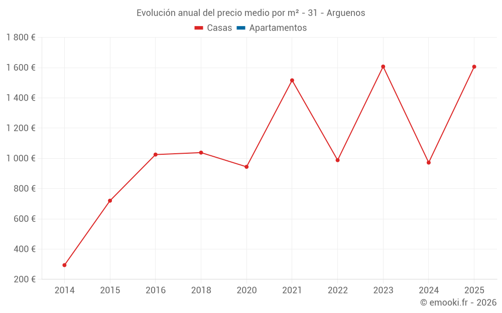 Evolución del precio medio por m² de las casas