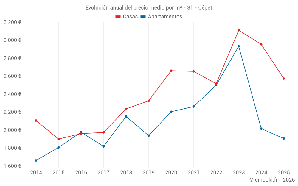 ¿Cuál es el precio por m2 de las casas en Cépet?