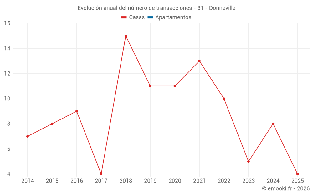 El precio mediano en las 14 transacciones de casas de los últimos 24 meses en la comuna de Donneville fue de 2 754 € por metro cuadrado para un valor patrimonial medio de 311 495 €. Durante este período el 60% de las transacciones estuvieron entre 2 302 y 3 504 € por metro cuadrado (del 2º al 8º decil).
