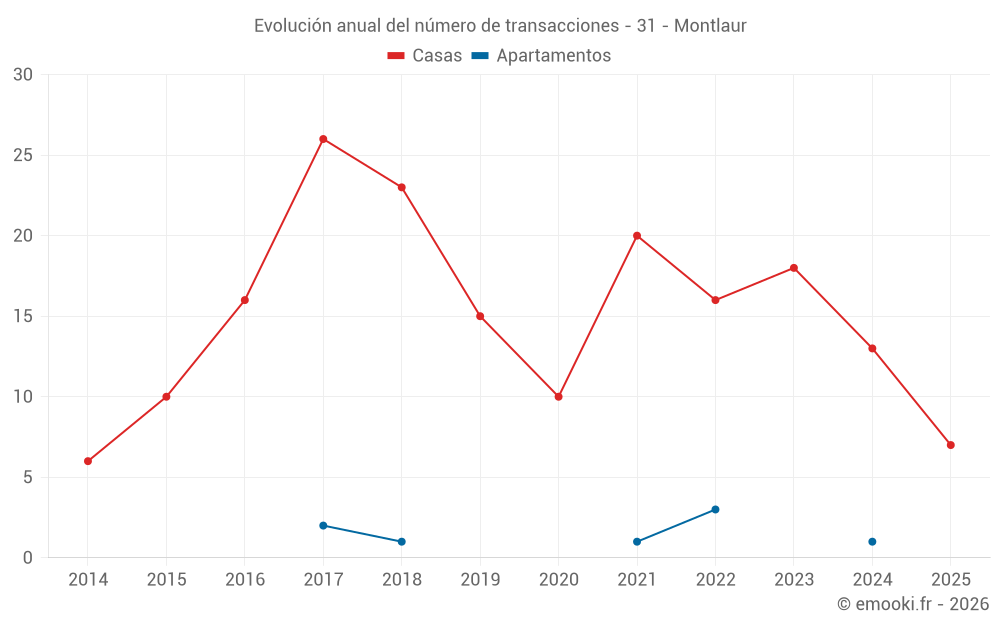 El precio mediano en las 29 transacciones de casas de los últimos 24 meses en la comuna de Montlaur fue de 2 833 € por metro cuadrado para un valor patrimonial medio de 334 900 €. Durante este período el 60% de las transacciones estuvieron entre 2 268 y 3 390 € por metro cuadrado (del 2º al 8º decil).