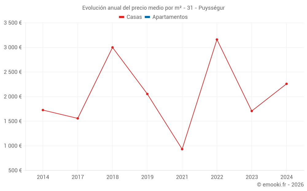 Evolución del precio medio por m² de las casas