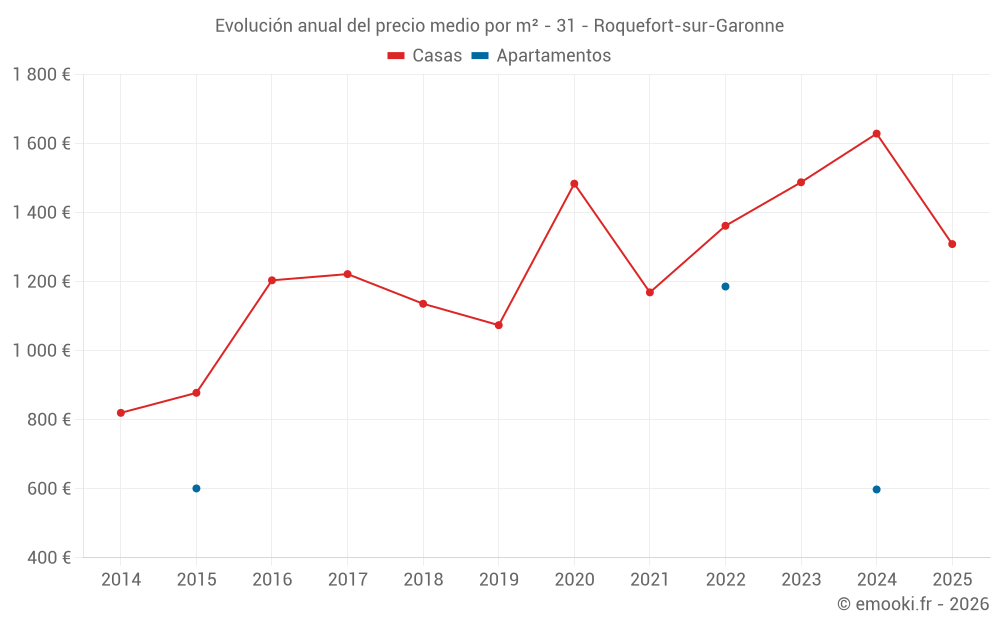 ¿Cuál es el precio por m2 de las casas en Roquefort-sur-Garonne?