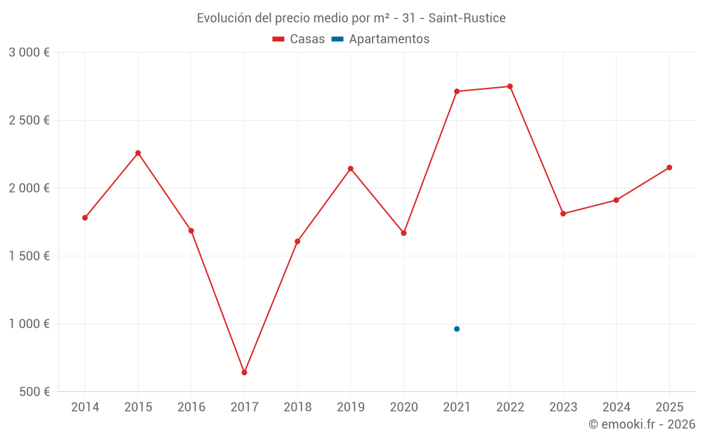 Mapa de precios de la vivienda en la comuna de Saint-Rustice, elija una sección para ver las transacciones por parcela.
